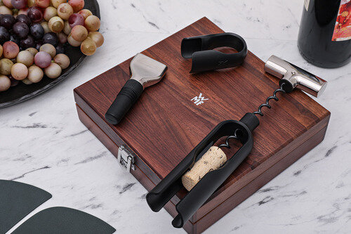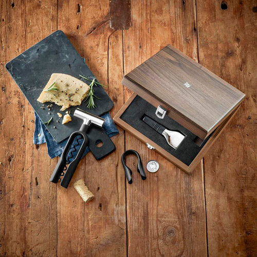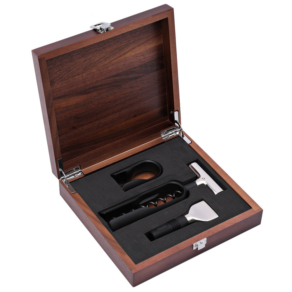 Набор из 3-х аксессуаров для вина Baric в деревянной коробке, пластик/силикон/нержавеющая сталь 18/10, черный/стальной, серия Аксессуары для бара, WMF, 3201006239 интересное: