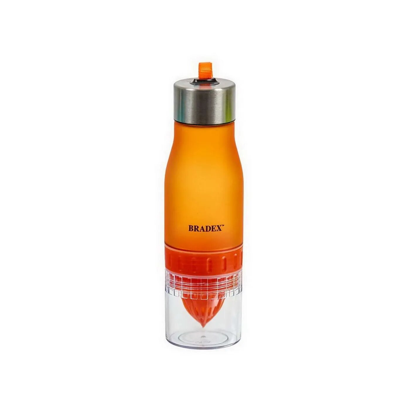 Бутылка для воды с соковыжималкой 0,6 л, оранжевая SF 0519 BRADEX