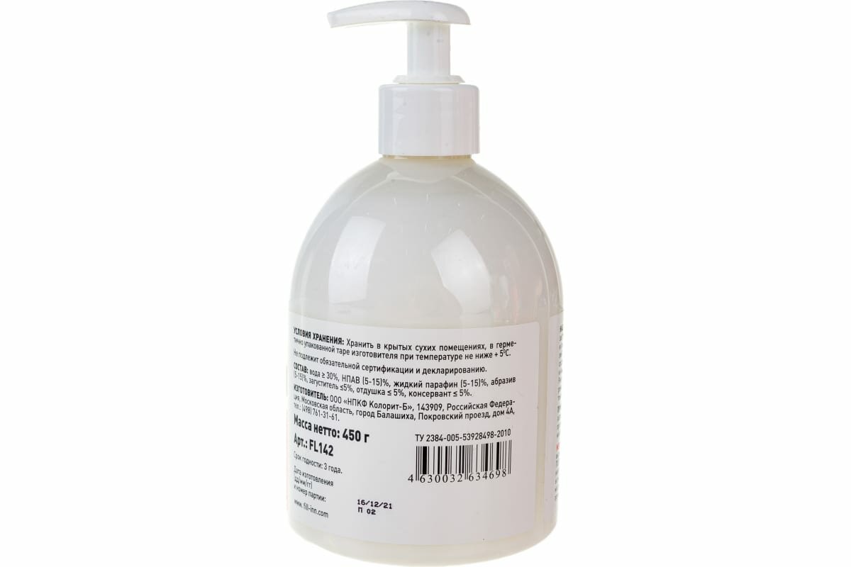 FL142 Крем для очистки рук с абразивом, 500 мл (флакон с дозатором), FILL Inn