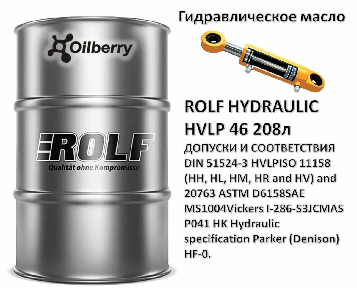 Масло Rolf Hydraulic HVLP 46 208 л рольф лубрикантс 322304 | цена за 1 шт