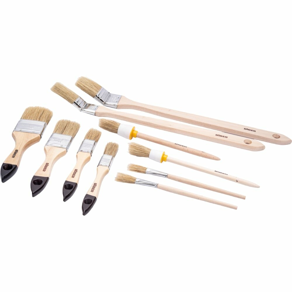 Бибер 31404 Набор кистей 10шт натур. щетина (флейц. 20/25/38/50мм, тонк. 5мм, кругл. 20/25мм, радиат