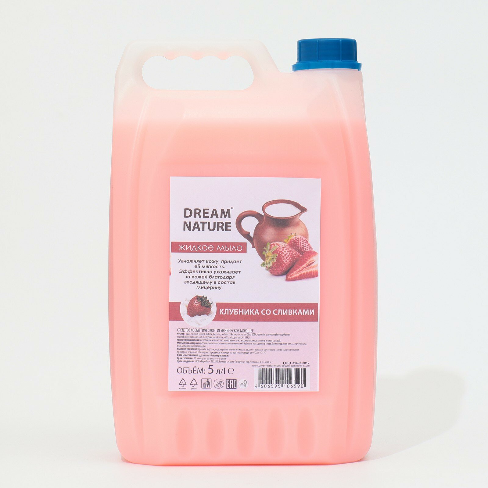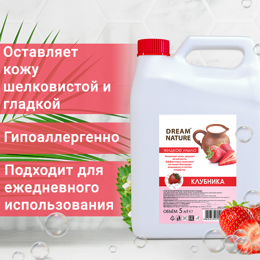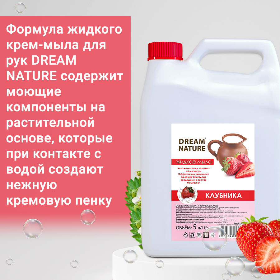 Жидкое мыло для рук Dream Nature "Клубника со сливками", 1 л