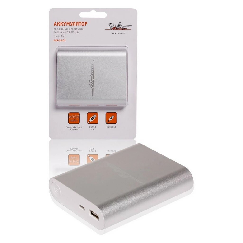 Аккумулятор внешний (Power Bank) Airline, 6000мАч, вход microUSB, выход USB 5В/2.1А, арт. APB-06-02