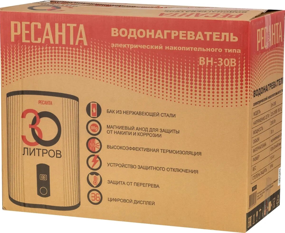 Водонагреватель накопительный ВН-30В Ресанта 74/5/1 Ресанта