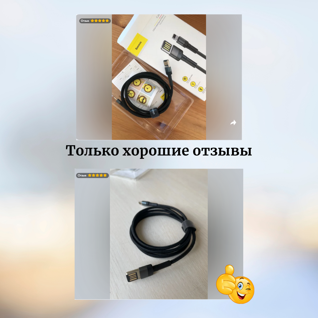 | Минусы: | провод сделан не ровно, когда вставляешь его в телефон, он шатается в нем и постоянно отходит |
