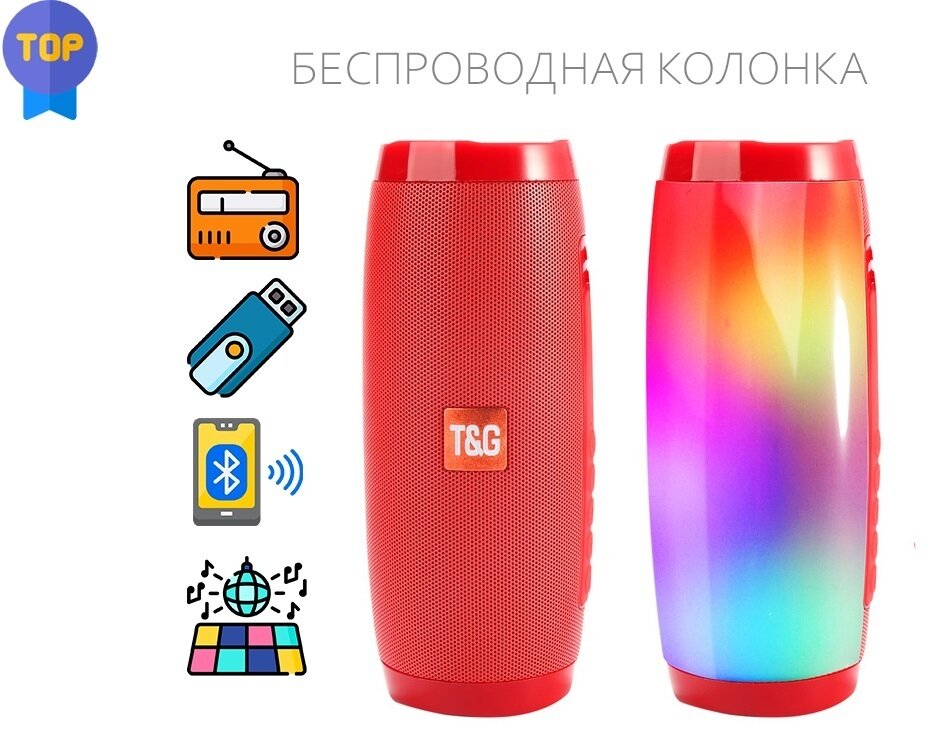 Беспроводная колонка T&G 157 с подсветкой, 10 ватт, 2 динамика, 1200мАч, цвет-красный