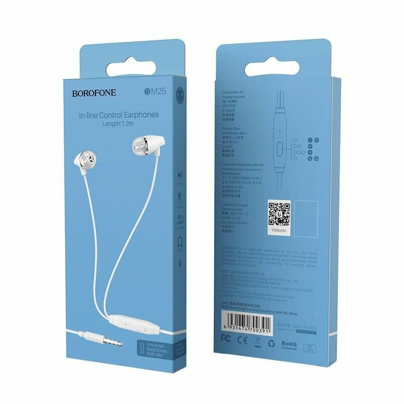 Проводные наушники BOROFONE BM25 Sound edge, белый
