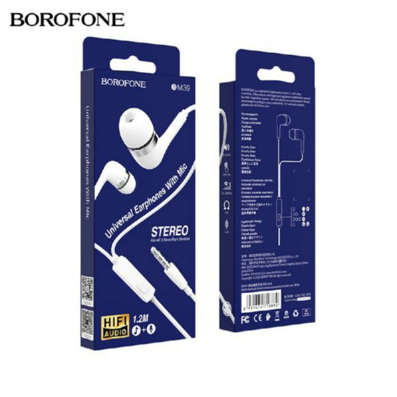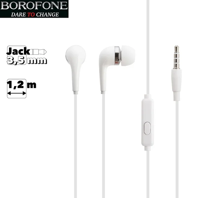 Проводные наушники с микрофоном, внутриканальные, Borofone BM39 Refined chant, 3.5 Jack, белые
