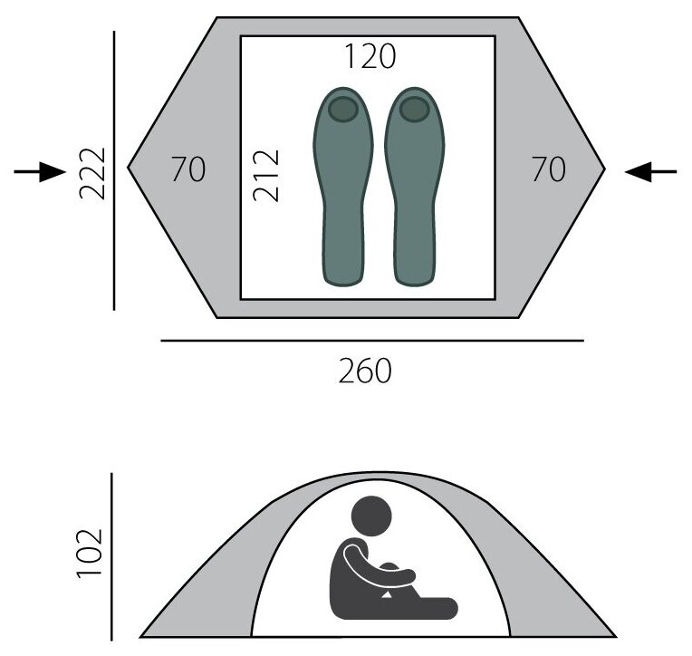 | Длина внешней палатки | 260 см |