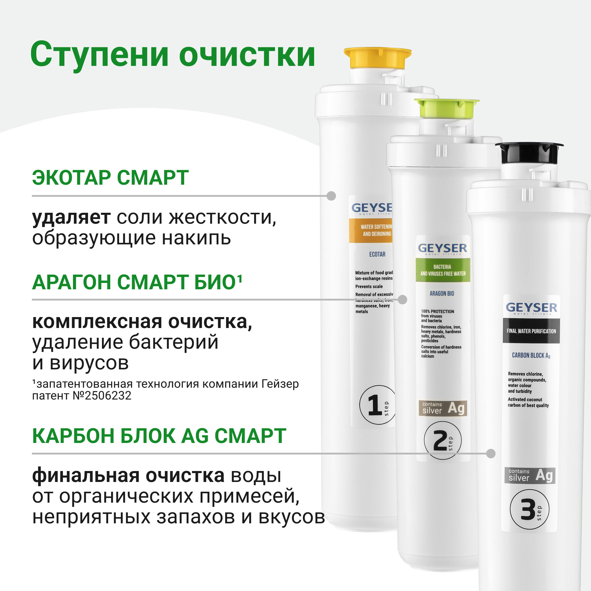 Купить Комплект картриджей для фильтра Гейзер Смарт Био 521 (50104) .