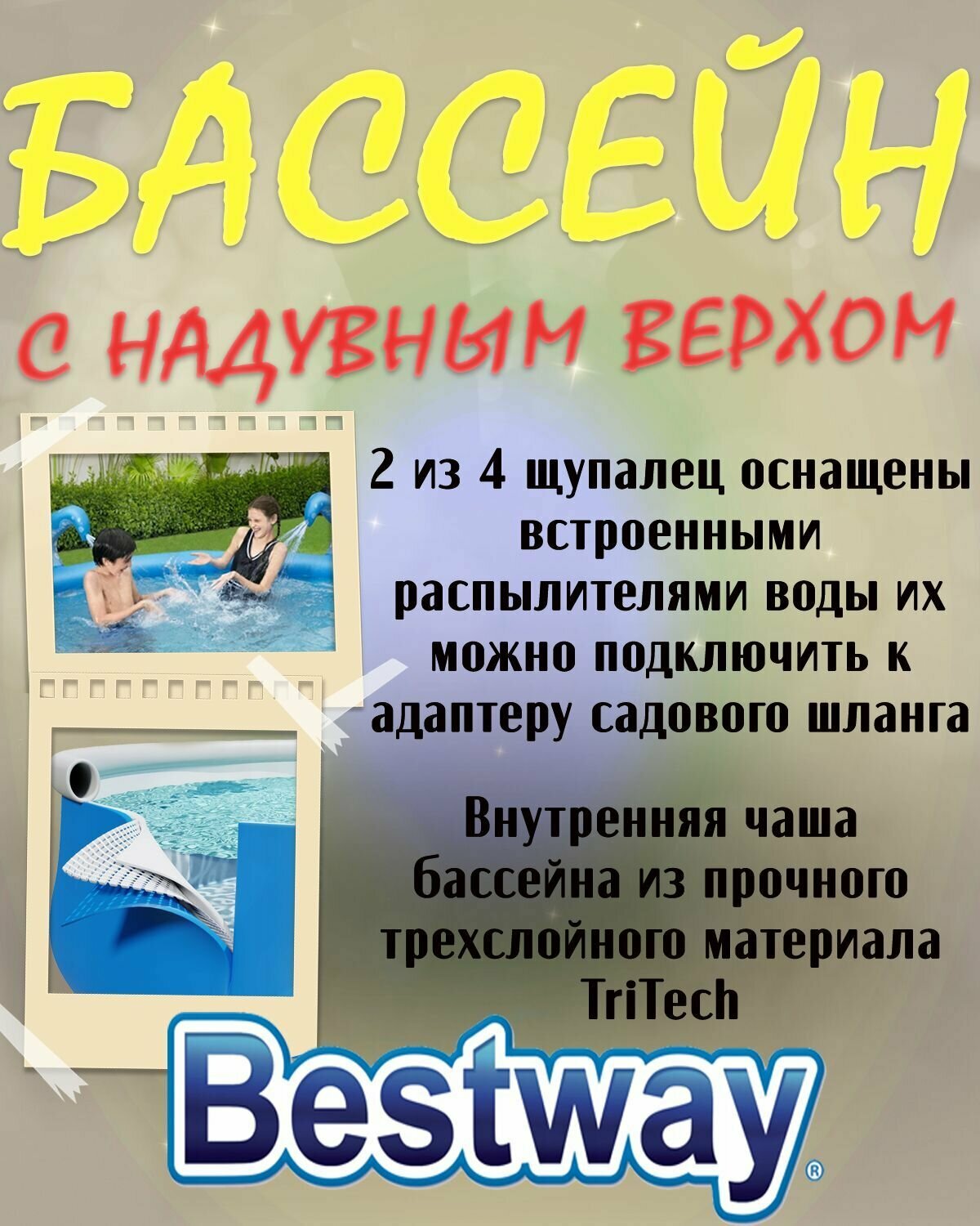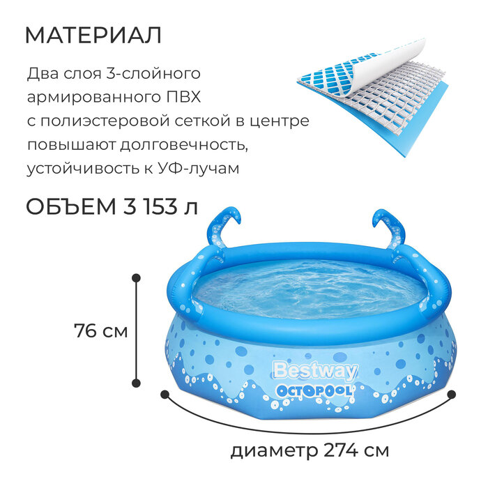 СохранитьБассейн Bestway Осьминог 57397, 274х76 см, 274х76 см интересное: