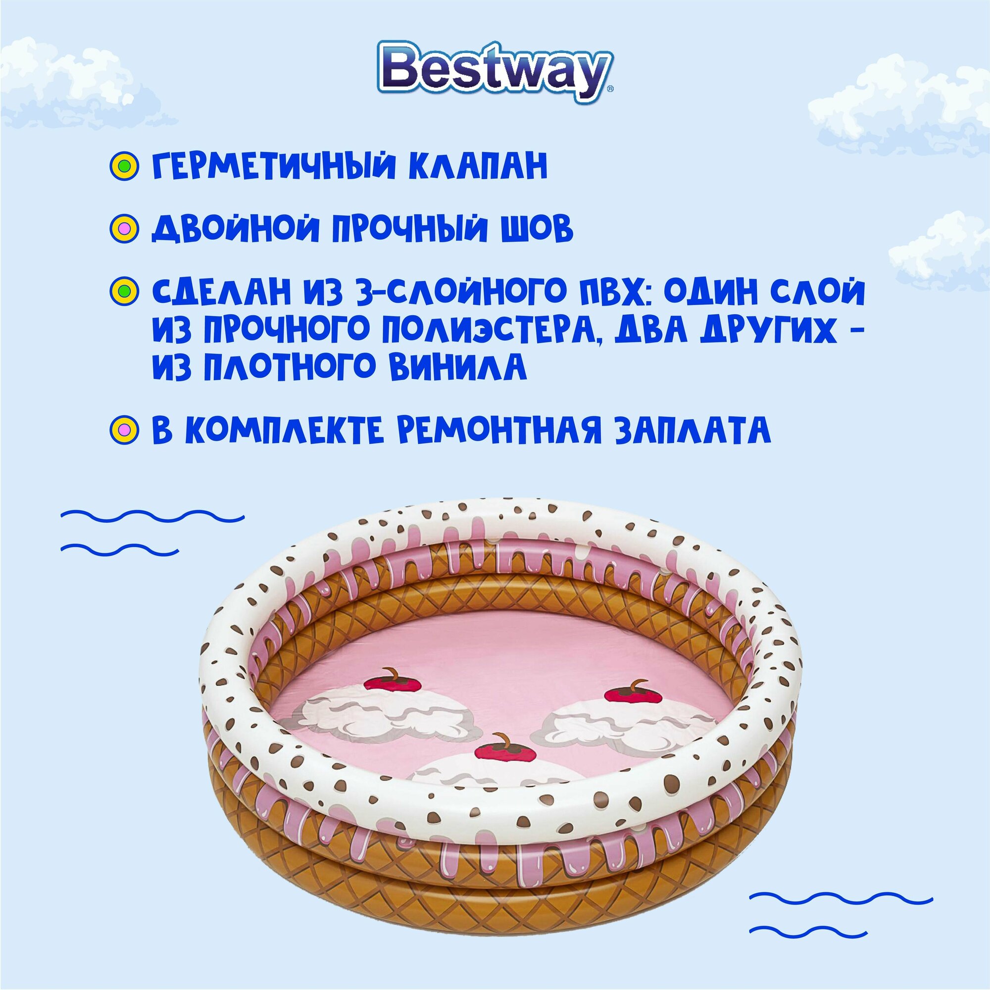 Бассейн детский BestWay 51144 Sundae Funday (160х38см) 2+