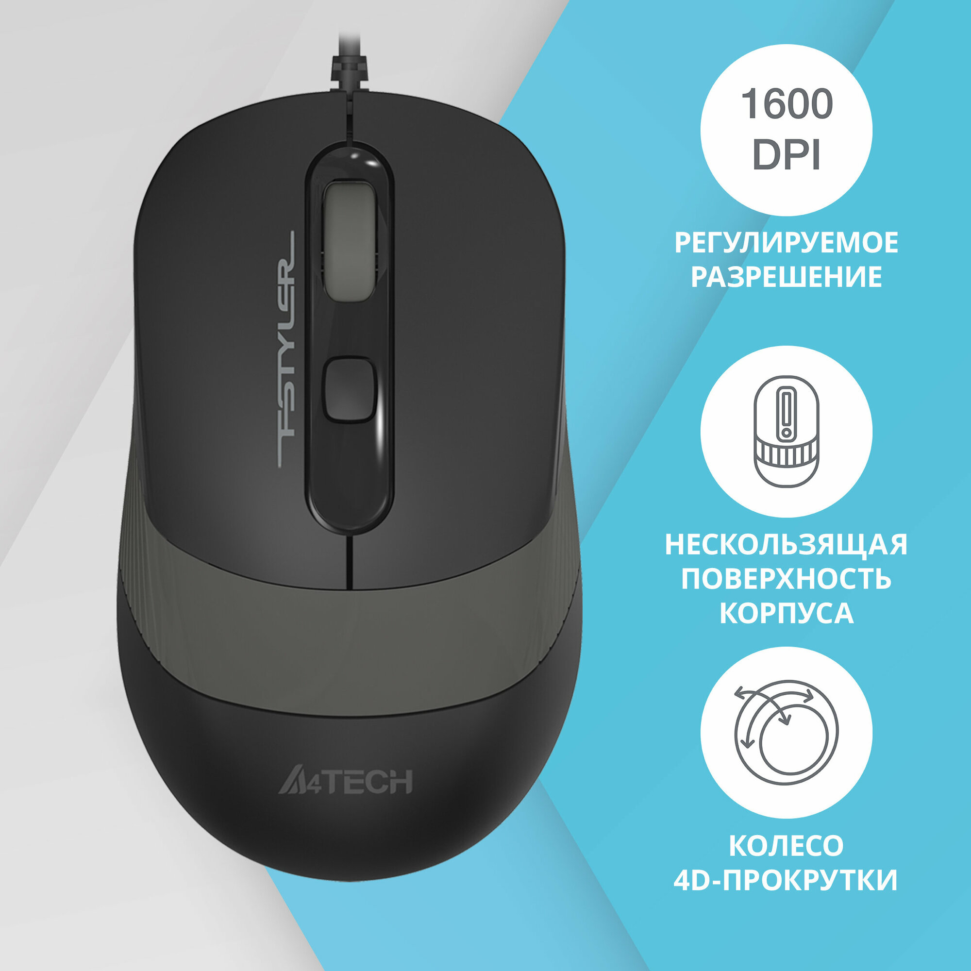 Мышь A4TECH Fstyler FM10, оптическая, проводная, USB, черный и серый [fm10 grey]