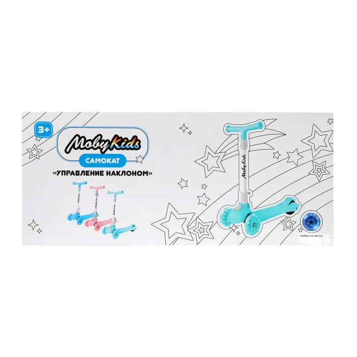 Самокат Moby Kids, складной, 120 PU со светом, мятный