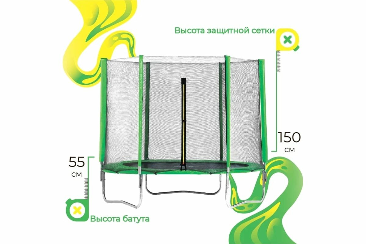 Батут с защитной сеткой DFC Trampoline Fitness 8FT зеленый внешняя сетка