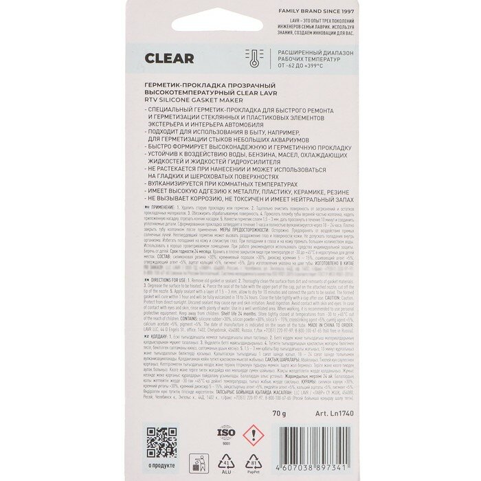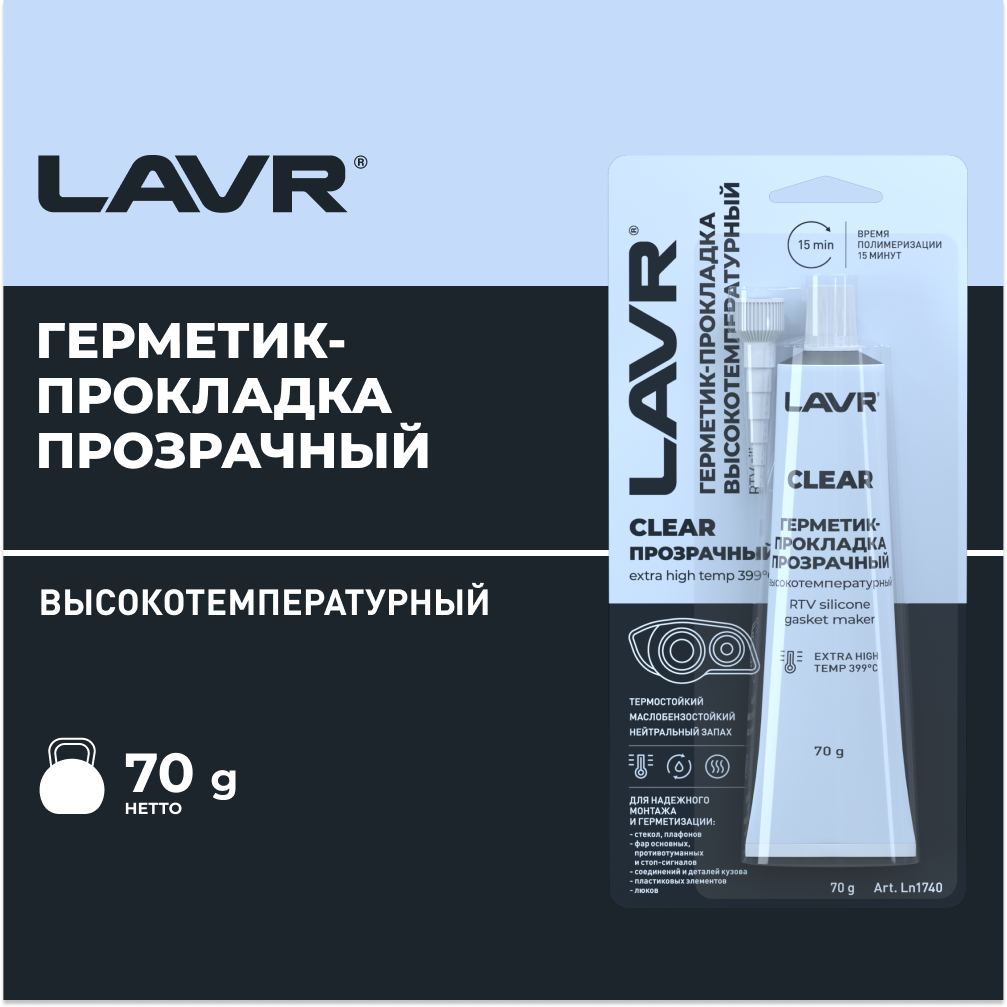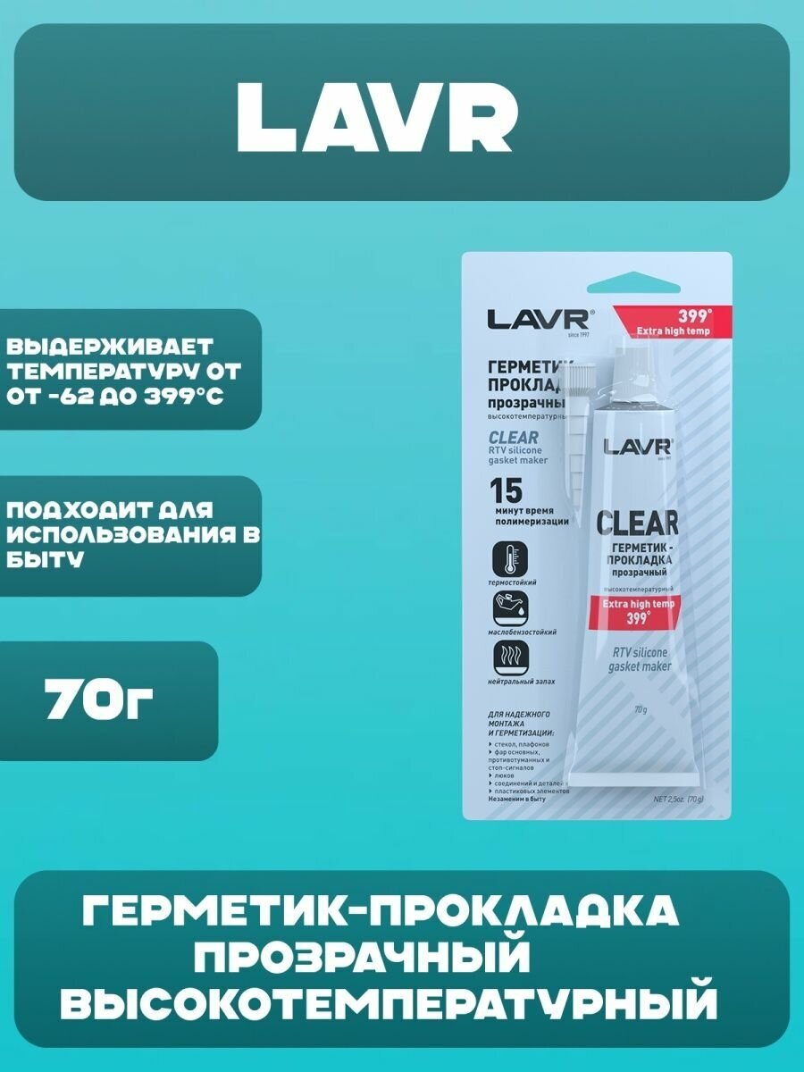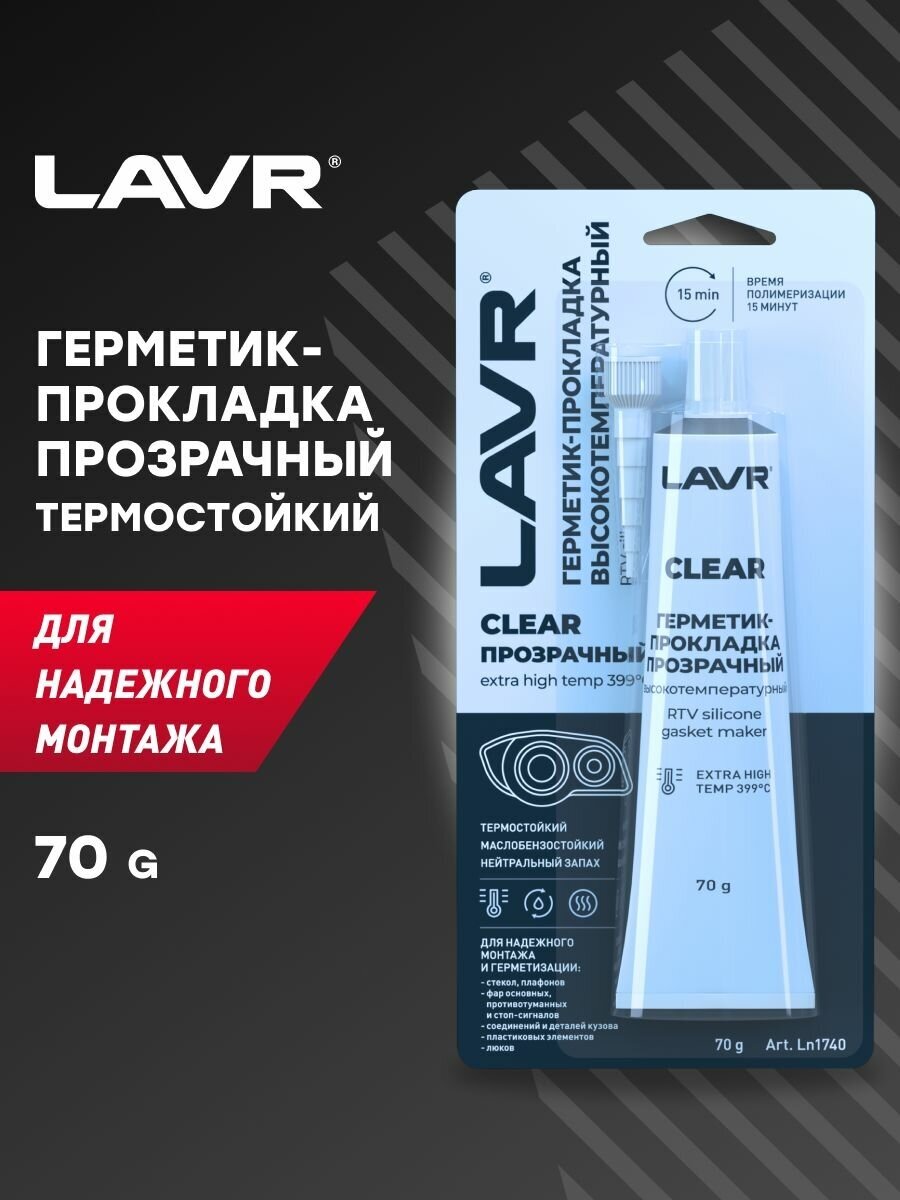 Герметик-прокладка прозрачный высокотемпературный Clear LAVR, 70 Г, Ln1740 интересное: