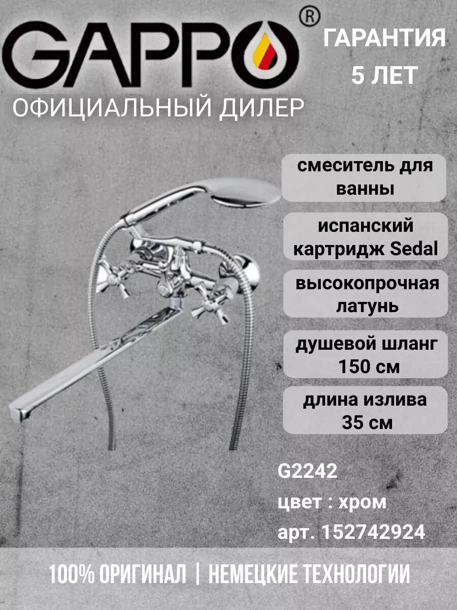 G2242 Смеситель для ванны, латунь/хром - GAPPO