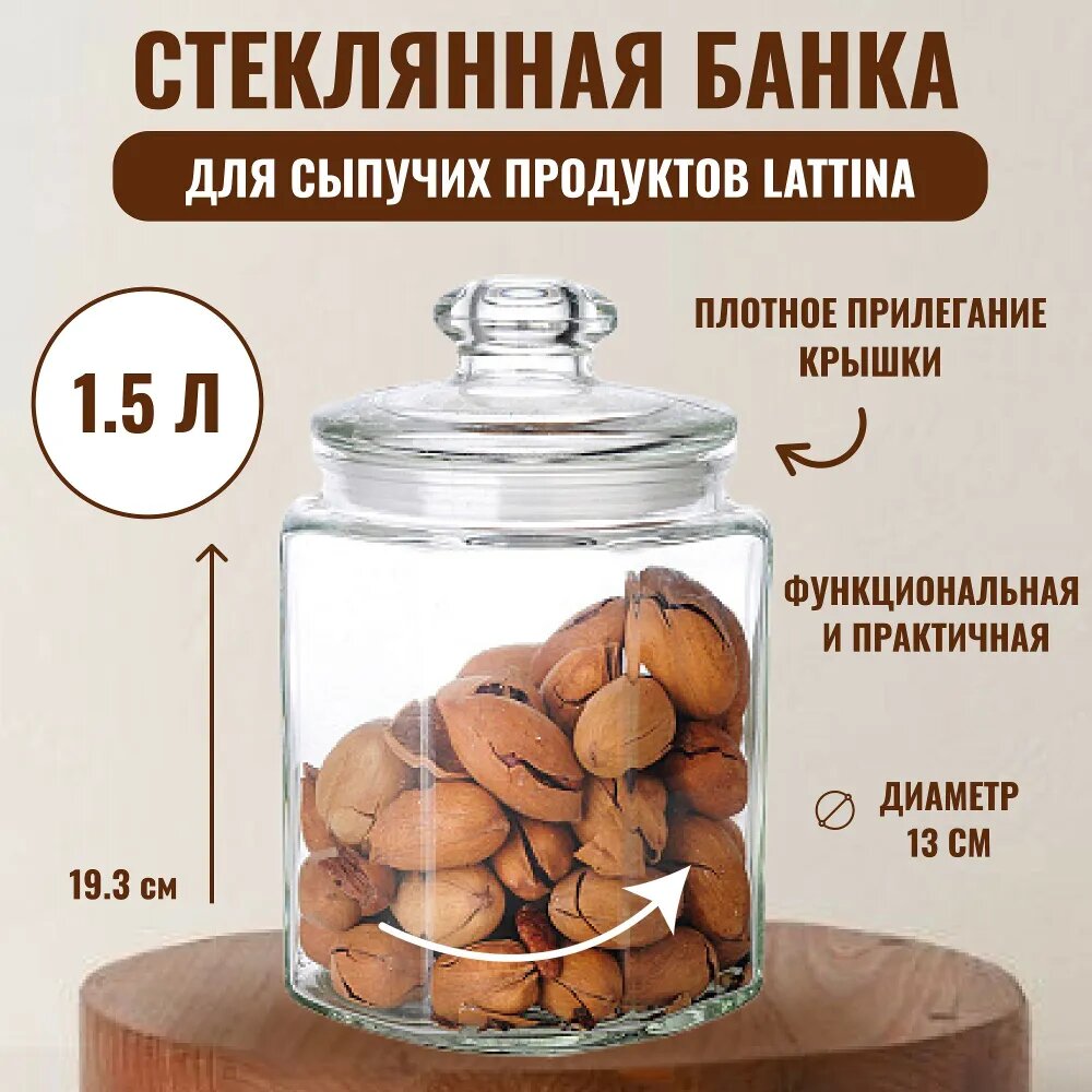 Стеклянная банка для сыпучих продуктов с крышкой LATTINA, объем: 1.5 л интересное: