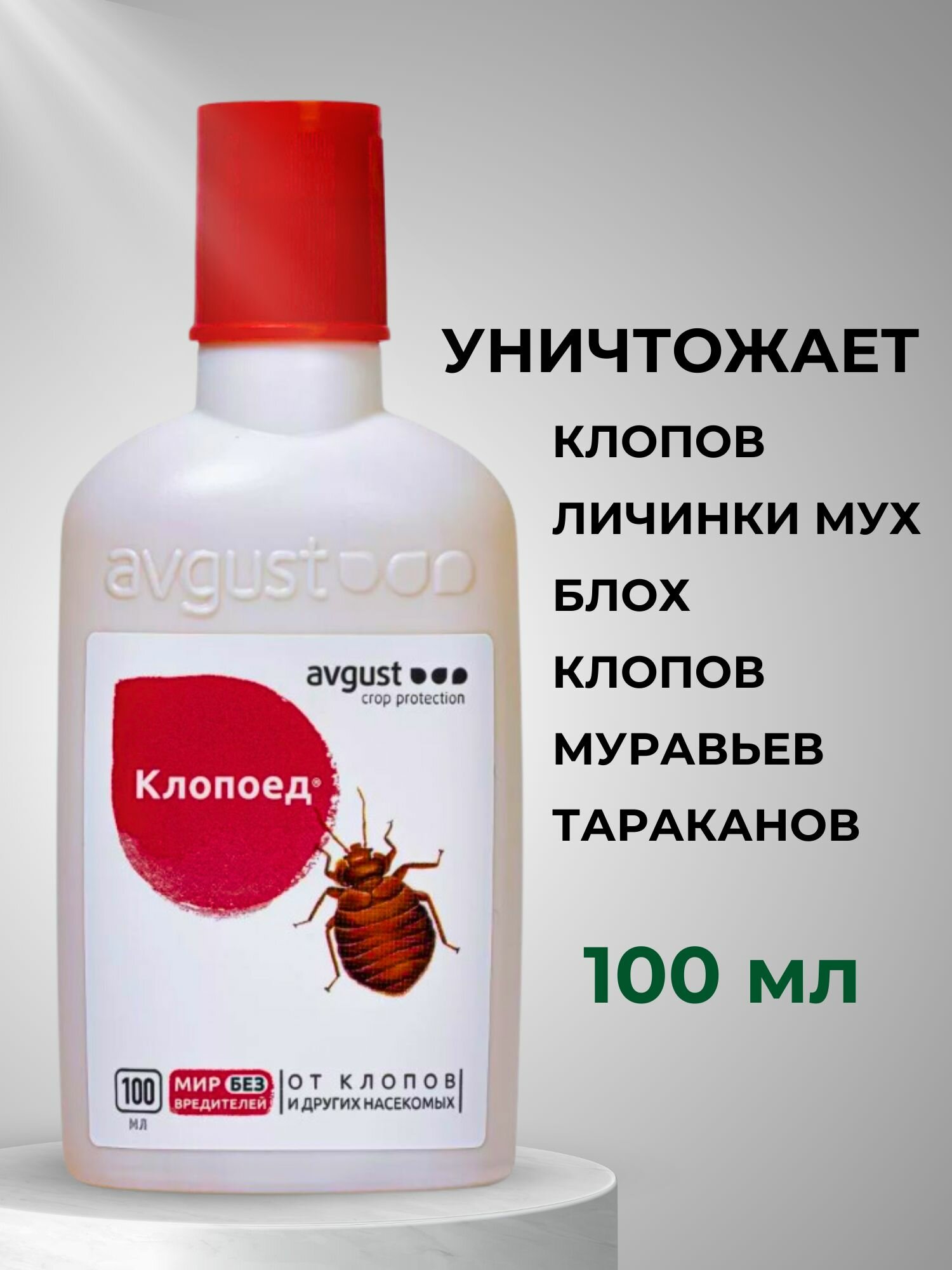Концентрат avgust Клопоед от клопов и других насекомых, 100 г, 100 мл, белый