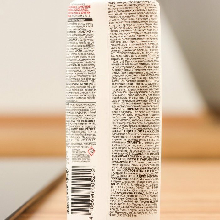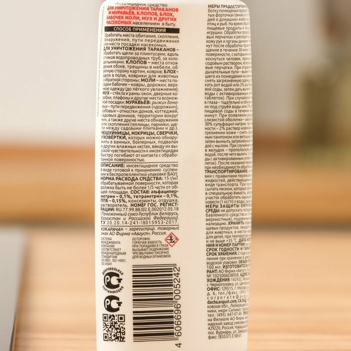 Спрей avgust Кукарача от тараканов чешуйниц и мокриц, 110 г, 100 мл, белый