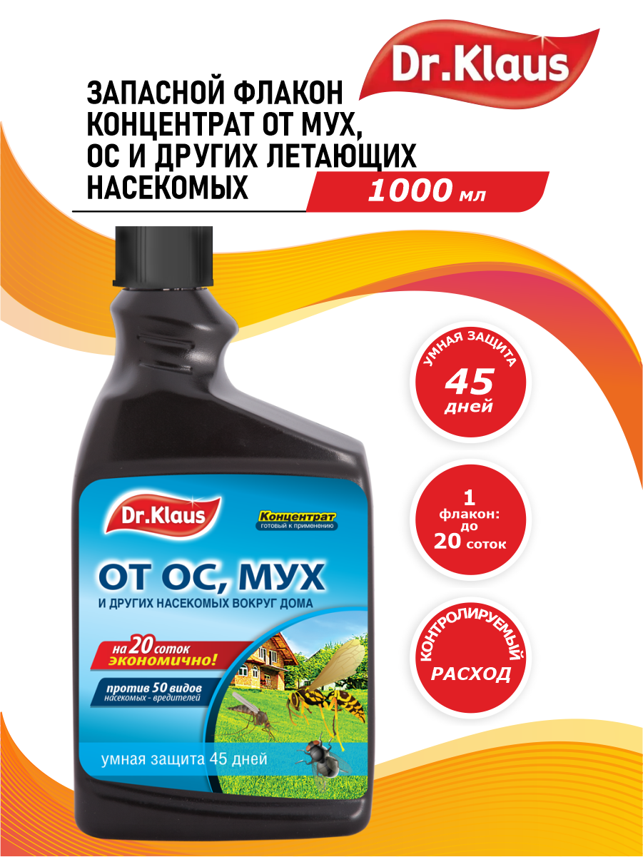 Dr.Klaus Запасной флакон концентрат от МУХ, ОС и других летающих насекомых, флакон 1 л
