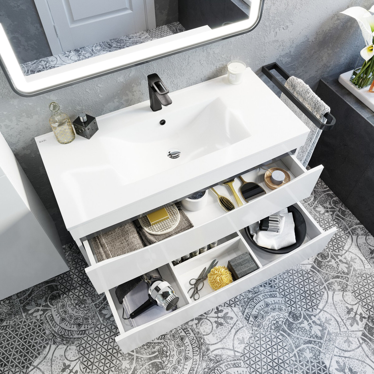Тумба подвесная, белая, 100 см, Cloud, IDDIS, CLO10W1i95. Подходит умывальник: 0131000i28