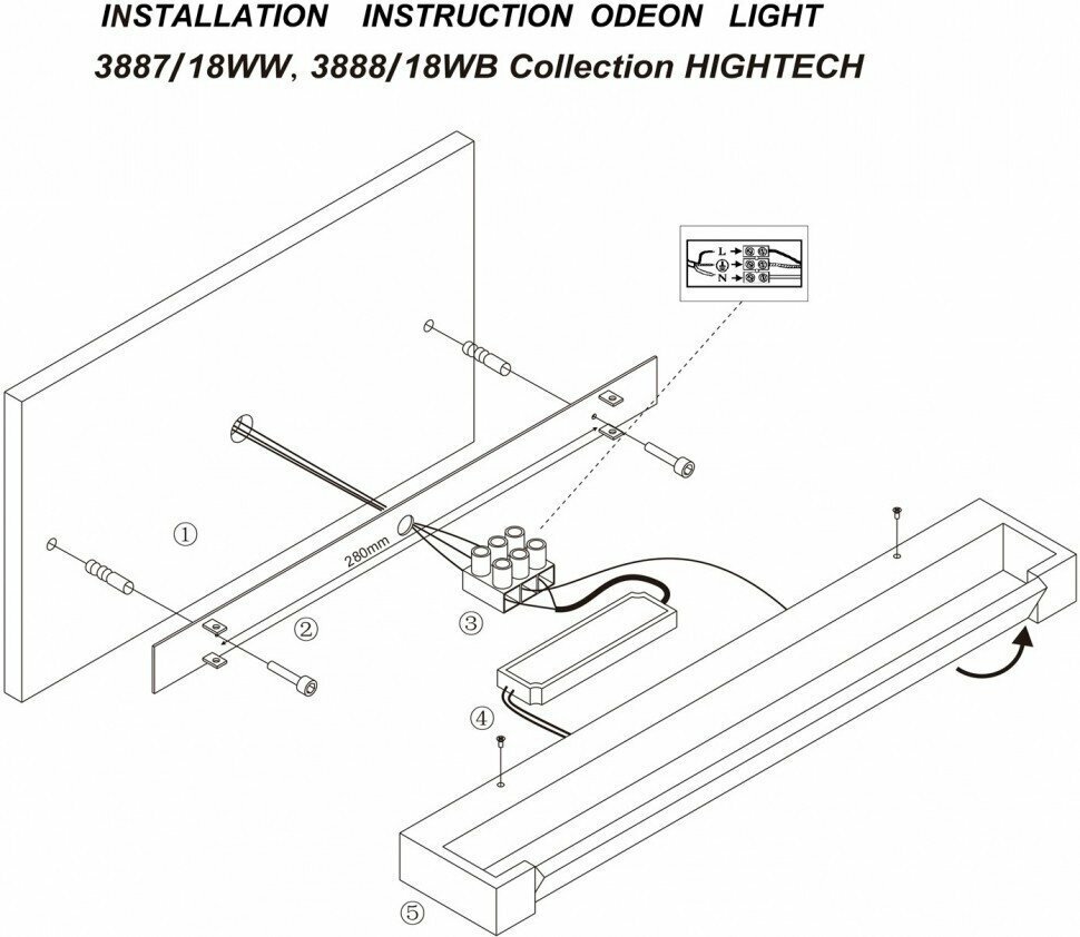 Светильник настенный Odeon Light RICCI, 4365/5WL, Стиль Хай-тек