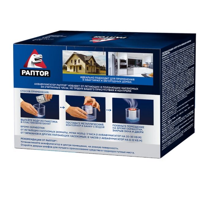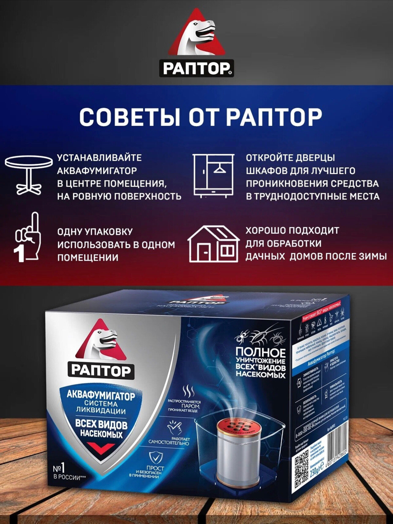 Аквафумигатор Раптор, средство от любых насекомых, 140 г / средство от комаров мух муравьев тараканов блох клопов мокриц