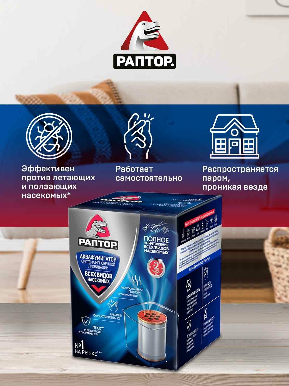 Аквафумигатор Раптор - средство от всех видов насекомых: тараканов, других ползающих и летающих.