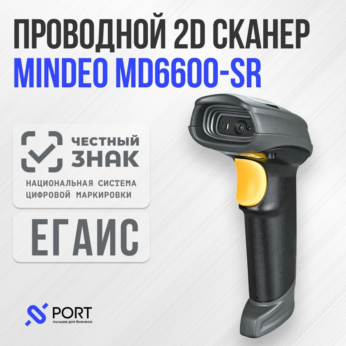 Mindeo MD6600-SR Сканер ШК ручной, 2D имидж, серый; ЕГАИС; Честный Знак USB