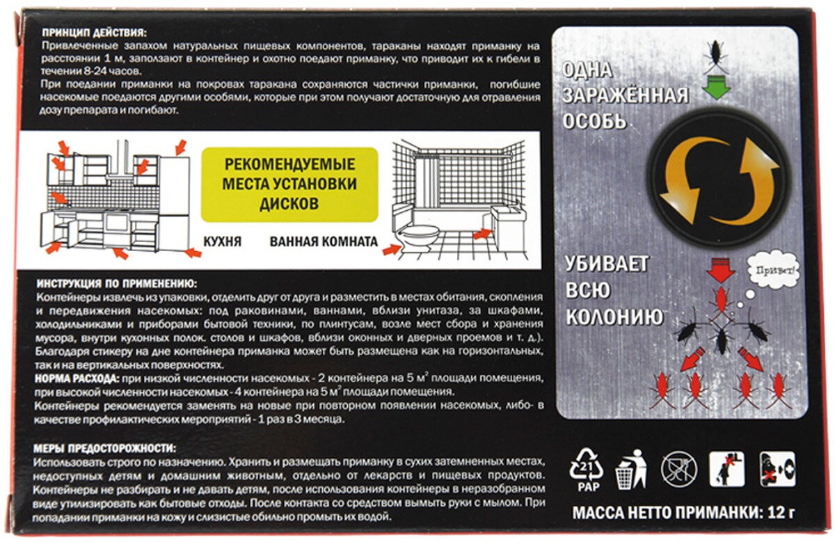 1) приманка, на заводскую почти не попадались - добавил к ней еще кусочек огурца - "урожайность" стала в разы выше. Теперь просто не могут обойти стороной) 2) Клеевой слой довольно сильный - как магнит притягивает к себе все, в том числе и шерсть - так что если есть питомцы или какая пыль, то ловушка довольно быстро забьется! Комментарий В целом, хорошо но польские Форсайт будут получше! Дополнение: вторая партия, произведенная в 2019 оказалась куда хуже, чем та, которую я брал в прошлый раз(проивзеденная в 2017 году, летом). Тараканы, мало того что стали шугаться от заводской приманки, так даже те оголодалые товарищи, которые рискнули сунуться в неё, через какое-то время отклеиваются и теряя 1-2 лапки спокойно убегают. 2 недели - лишь 2 мелких новорожденных тарканоида на 2 ловушки! Это полный провал. Вывод: лучше не брать вообще теперь. Кстати, брал еще ленту от мух этой же фирмы (NoGuest!), так вот, у той, мало того что клей тоже хреновый, так еще и крепление отклеилось и она с люстры упала прямо на стол и попала прямо в тарелку с блюдом! |