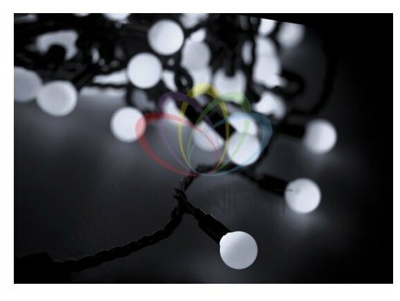 Гирлянда Мультишарики Ø38 мм, 10 м, 40 LED белый, черный ПВХ, IP65, постоянное свечение, 230В соединяется NEON-NIGHT (нужен шнур питания 303-500)