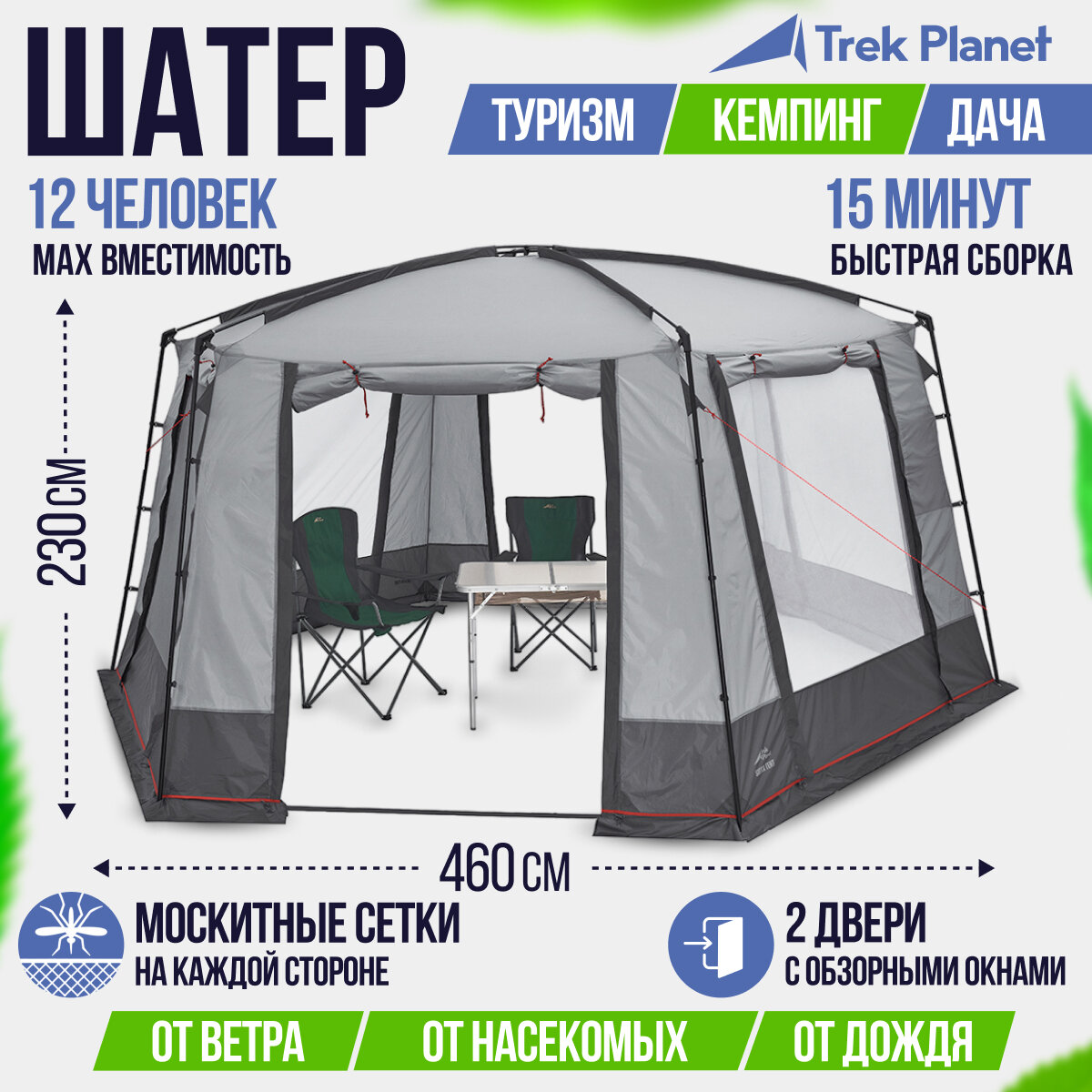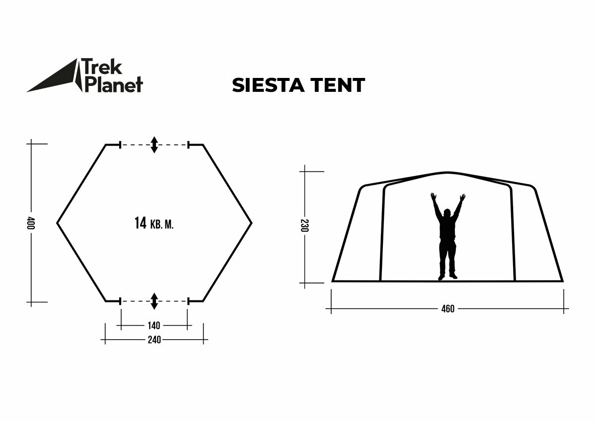 Шатер-тент TREK PLANET Siesta Tent, шестиугольной формы, 460 см х 400 см х 225 см