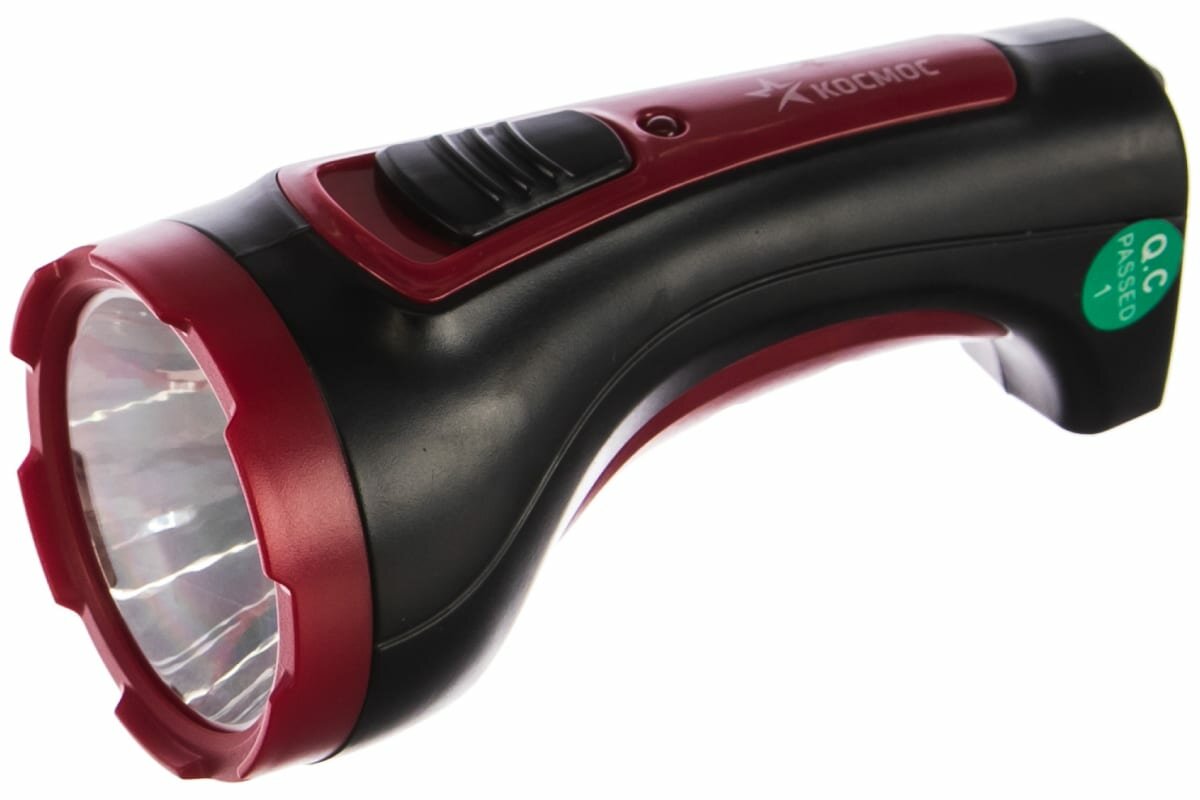 Фонарик аккумуляторный Космос Accu101WLED, черный/красный