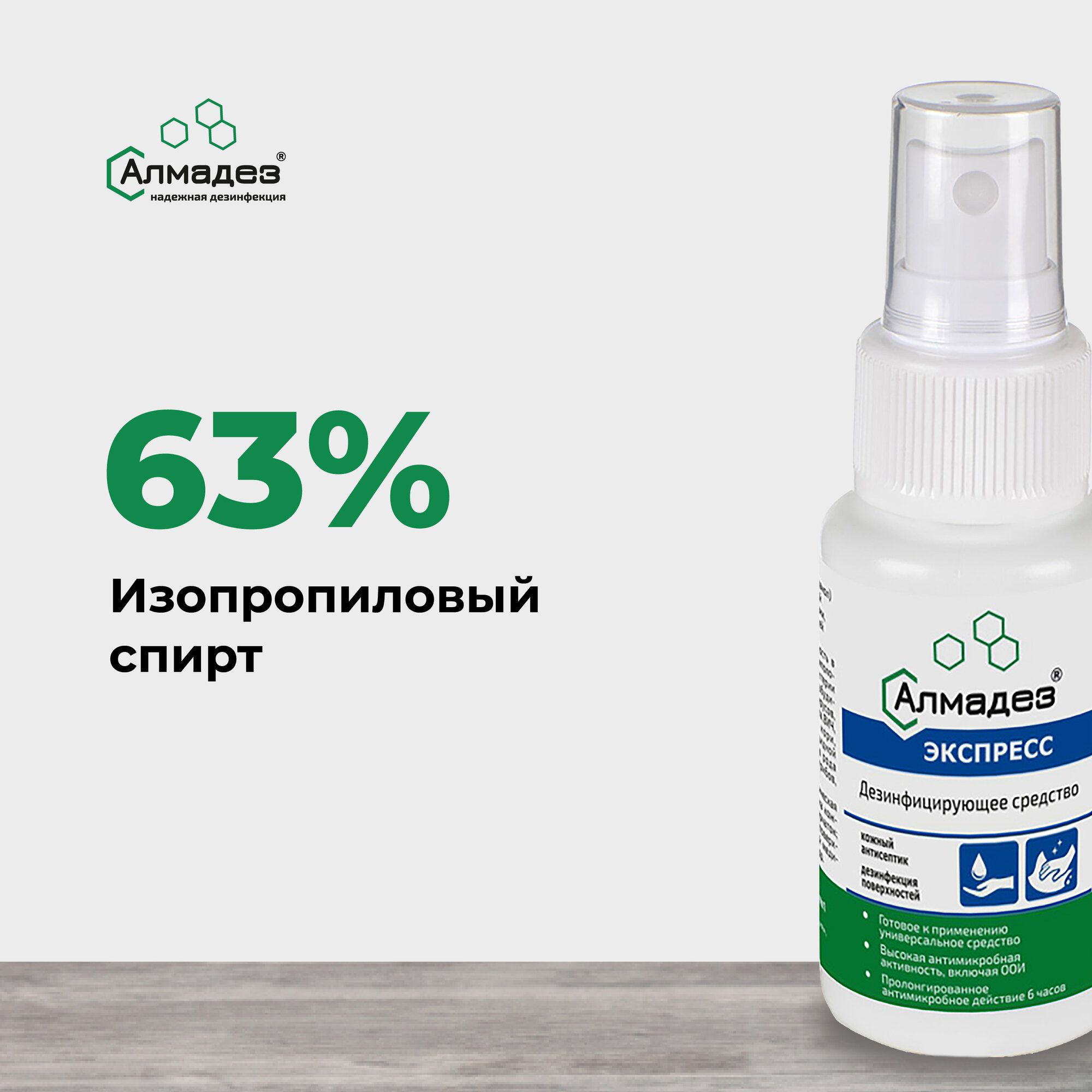 Антисептик для рук и поверхностей спиртосодержащий (63%) с распылителем 100мл алмадез-экспресс, дезинфицирующий, жидкость, АЭ-501