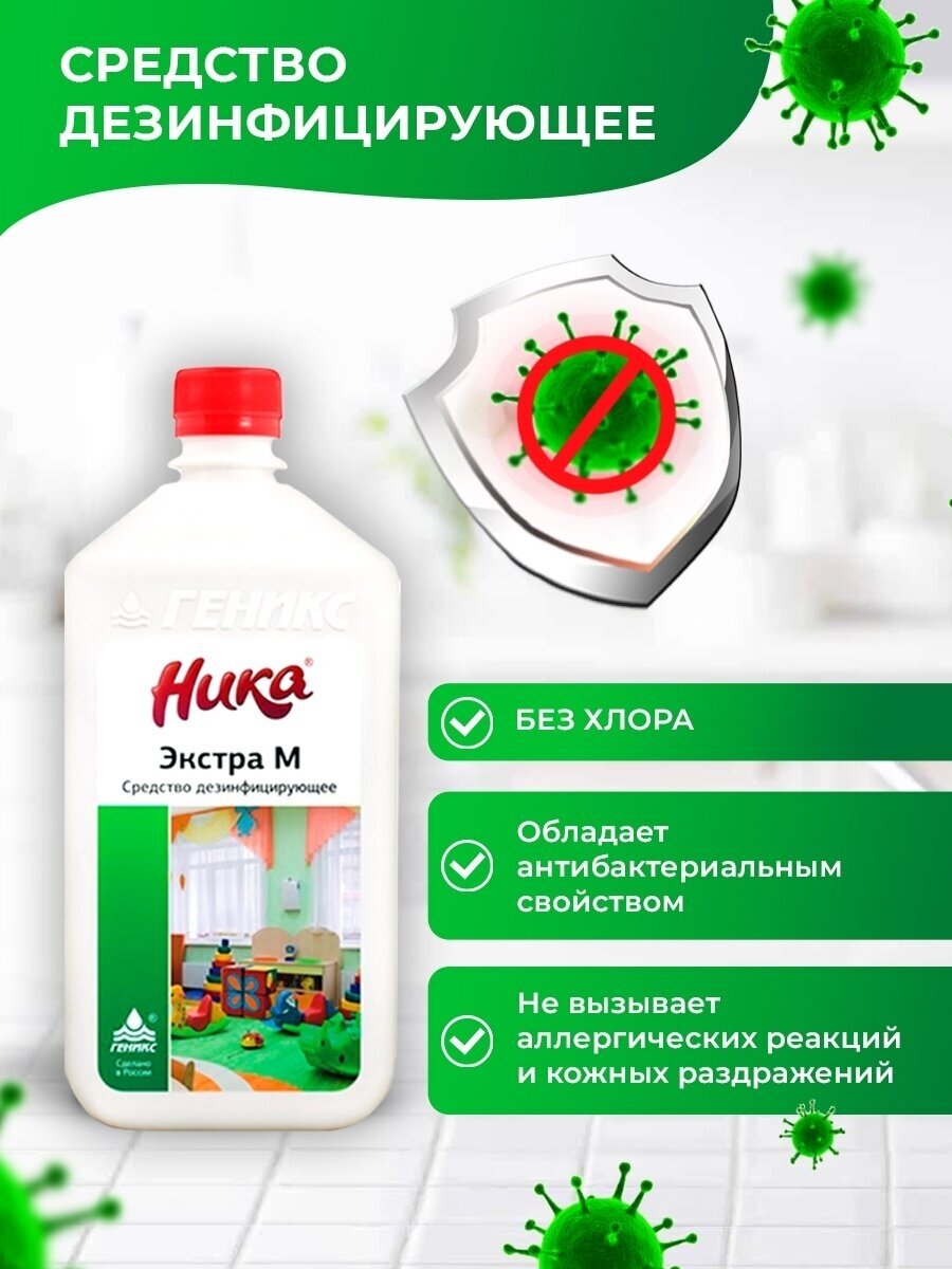 Ника Средство дезинфицирующее с моющим эффектом Экстра М, 1000 мл, тип крышки: винтовая