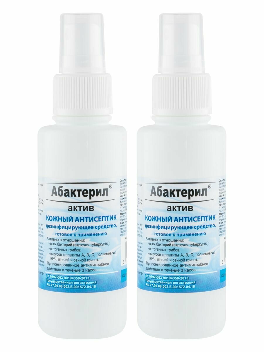 Антисептик кожный абактерил-актив 100 мл, спрей, 2 штуки