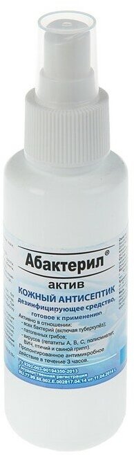 Кожный антисептик с вирулицидной активностью ГОСТ 12.1.007-76 Абактерил-Актив 100 мл спрей 1 шт.