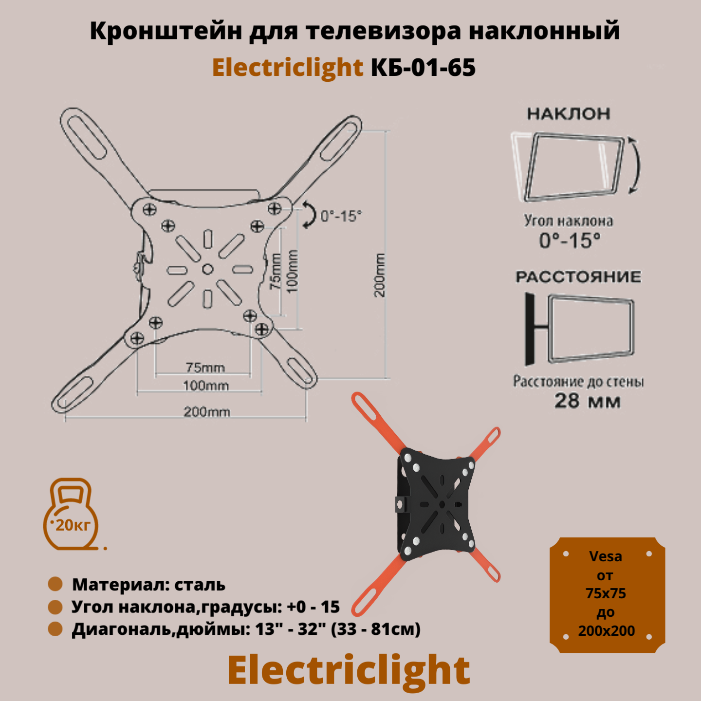 Кронштейн для телевизора на стену наклонный с диагональю 13"-32" Electriclight КБ-01-65,черный