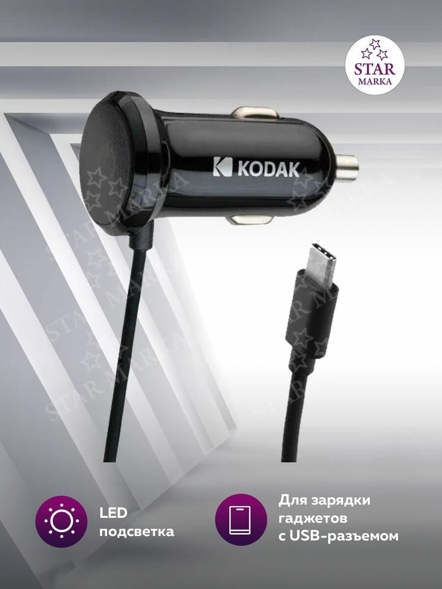 Автомобильное зарядное устройство KODAK UC105 с Type-C , кабель 1,2м, Quick Charge 3.0, 12-24В.