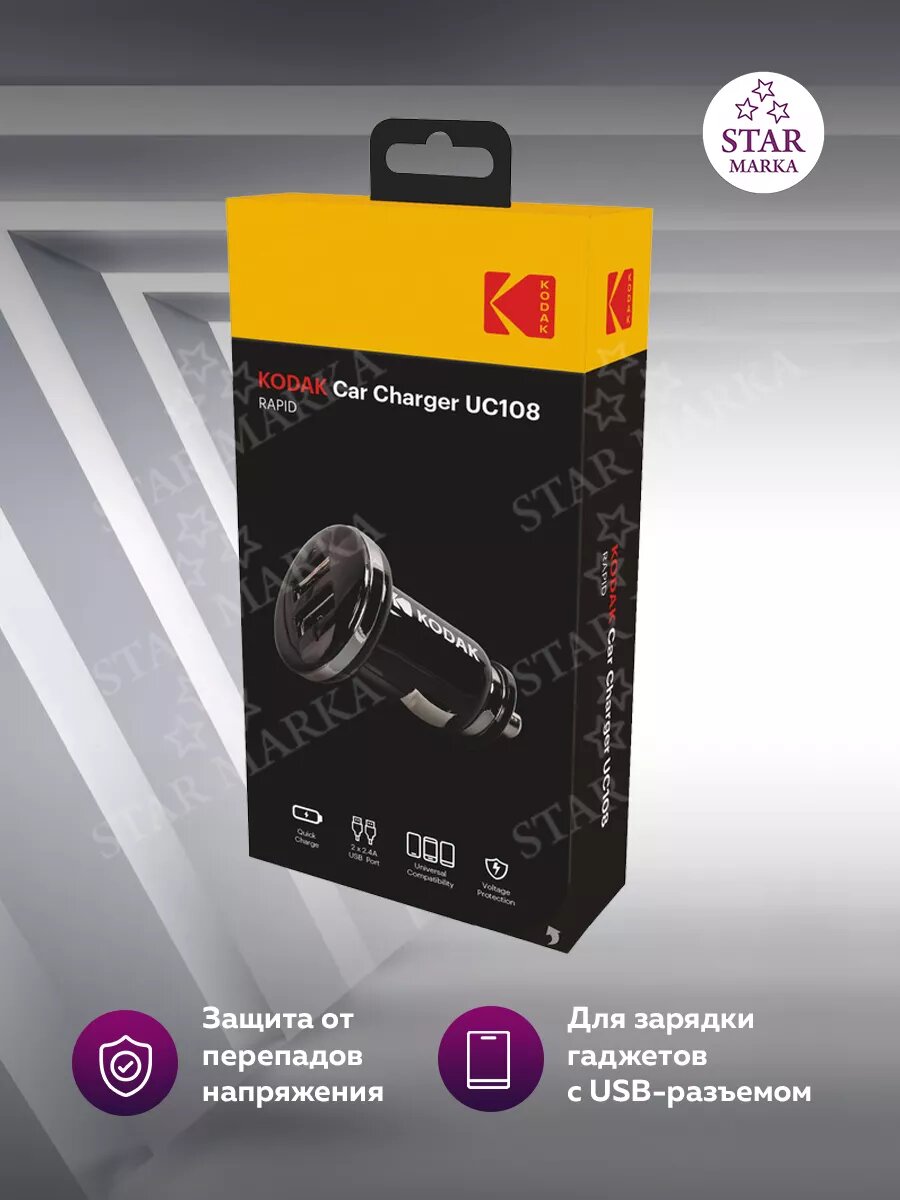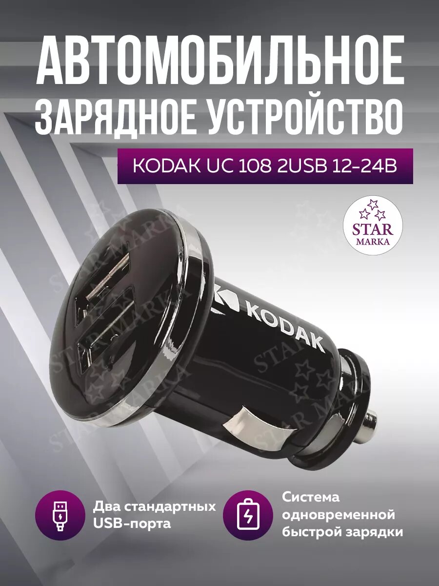 UC108 Автомобильное зарядное устройство "KODAK" 2USB 12-24В интересное: