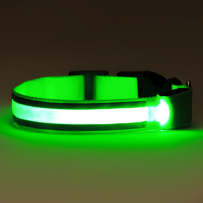 Купить Ошейник с подсветкой и двумя светоотражающими полосами, зелёный, 3 режима свечения, 40-45 см
