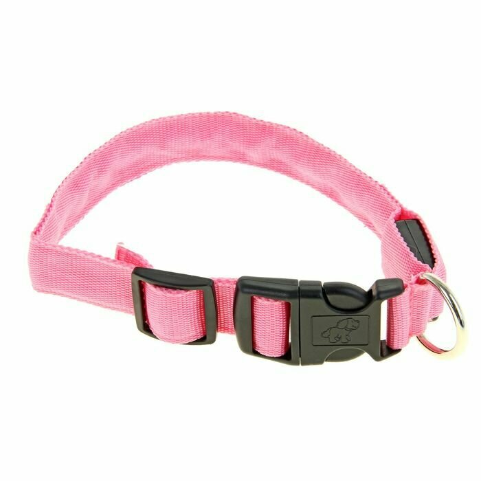 Купить Пижон Ошейник с подсветкой Двойная полоса размер М, ОШ 40-48 х 2,5 см 3 режима свечения розовый