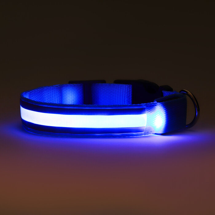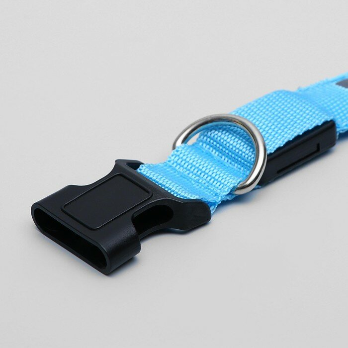 Купить Ошейник с подсветкой Двойная полоса размер S, ОШ 35-43 х 2,5 см, 3 режима свечения голубой