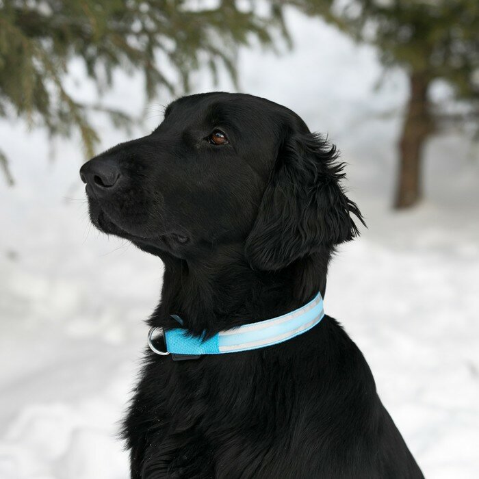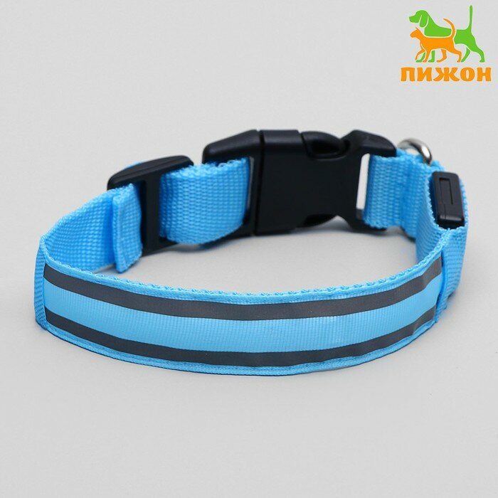 Ошейник с подсветкой Двойная полоса размер S, ОШ 35-43 х 2,5 см, 3 режима свечения голубой интересное: