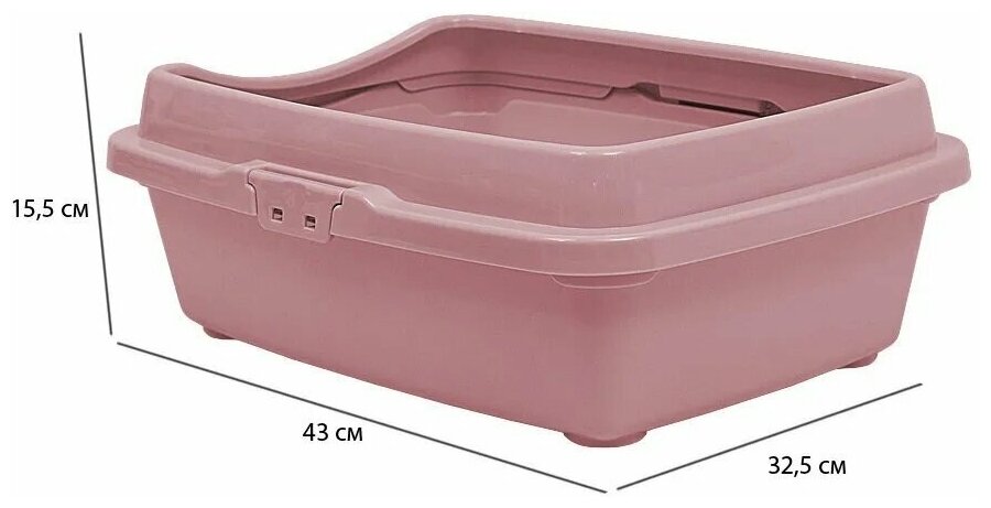 Купить Лоток для кошек и котов с высоким съемным бортом. Средний кошачий туалет. Горшок для животных с бортиками. Цвет розовый, размер 43х32,5х15,5 см