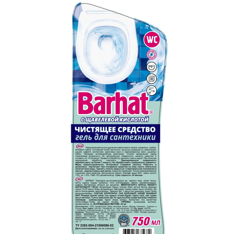 Чистящее средство д/чистки и дезинфекции сантехники BARHAT, с щавелевой кислотой, гель, 750гр