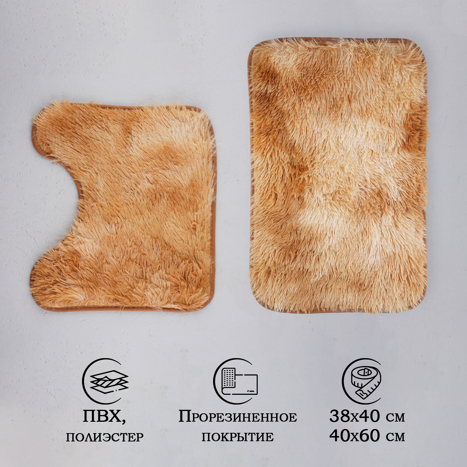 Набор ковриков для ванной и туалета Доляна «Пушистик», 2 шт, 38×40, 40×60 см, цвет коричневый