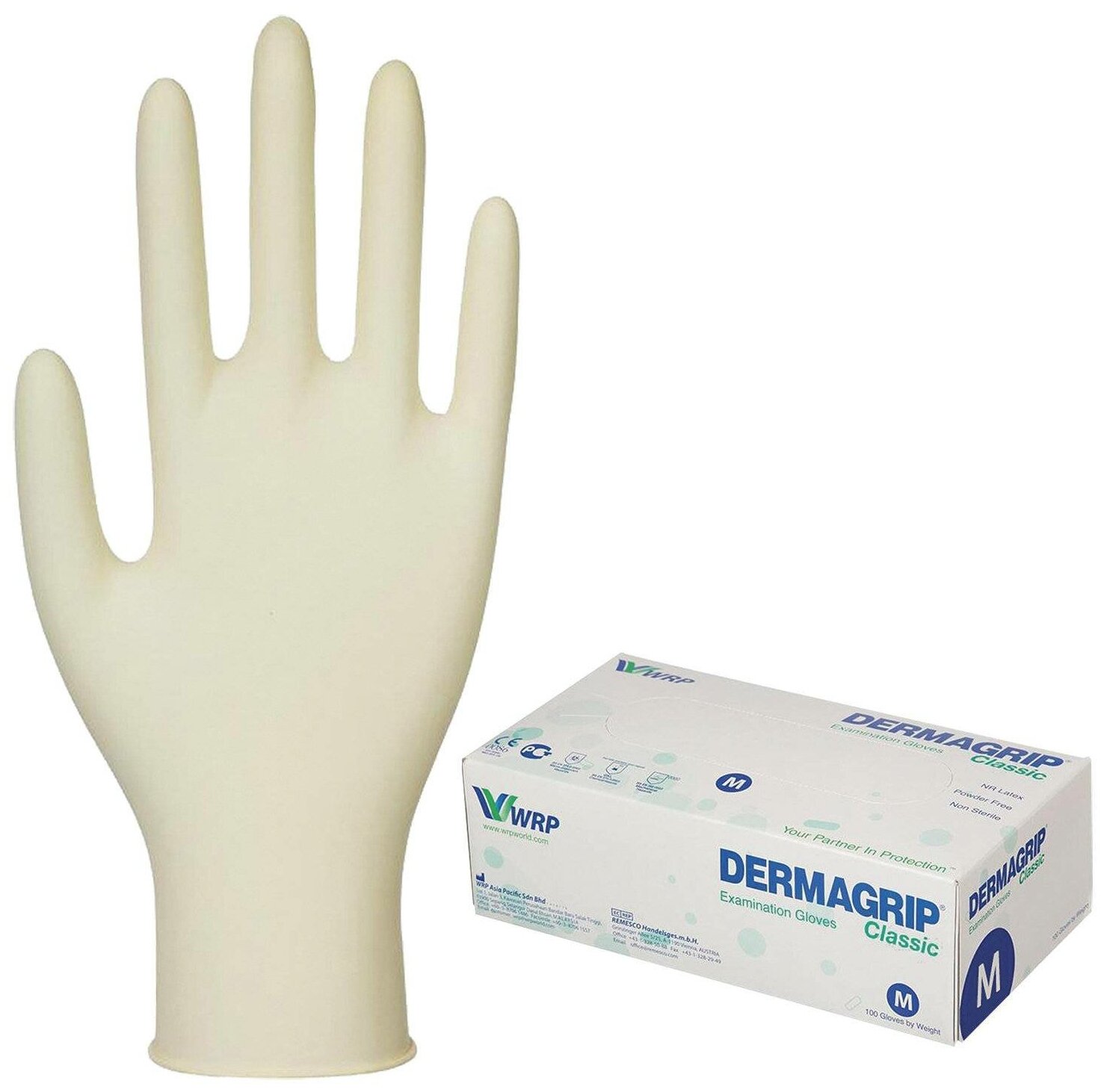 Перчатки латексные смотровые WRP Dermagrip Classic, 50 пар/100 штук, размер: M, цвет: светло-желтый