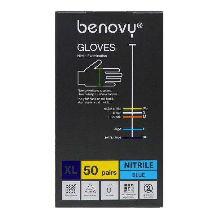 Ниже Вы можете прочитать отзывы на Перчатки медицинские диагностические Benovy XL, голубые, 50пар, ознакомится с подробными характеристиками, посмотреть интересные обзоры и фотографии на Перчатки медицинские диагностические Benovy XL, голубые, 50пар.